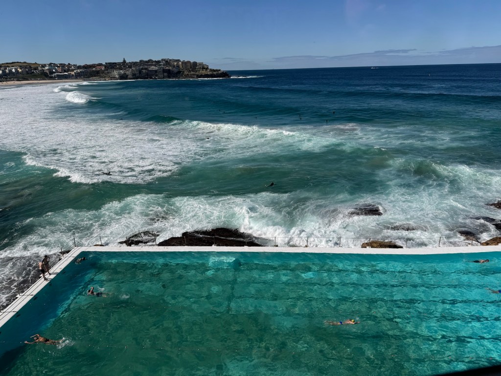 We finally arrived in Sydney Sunday morning and were able to check into our hotel room and get settled. We both managed to sleep on the plane so we were feeling pretty good. So after cleaning up we decide to head out to Bondi Beach and the Icebergs Club for lunch.