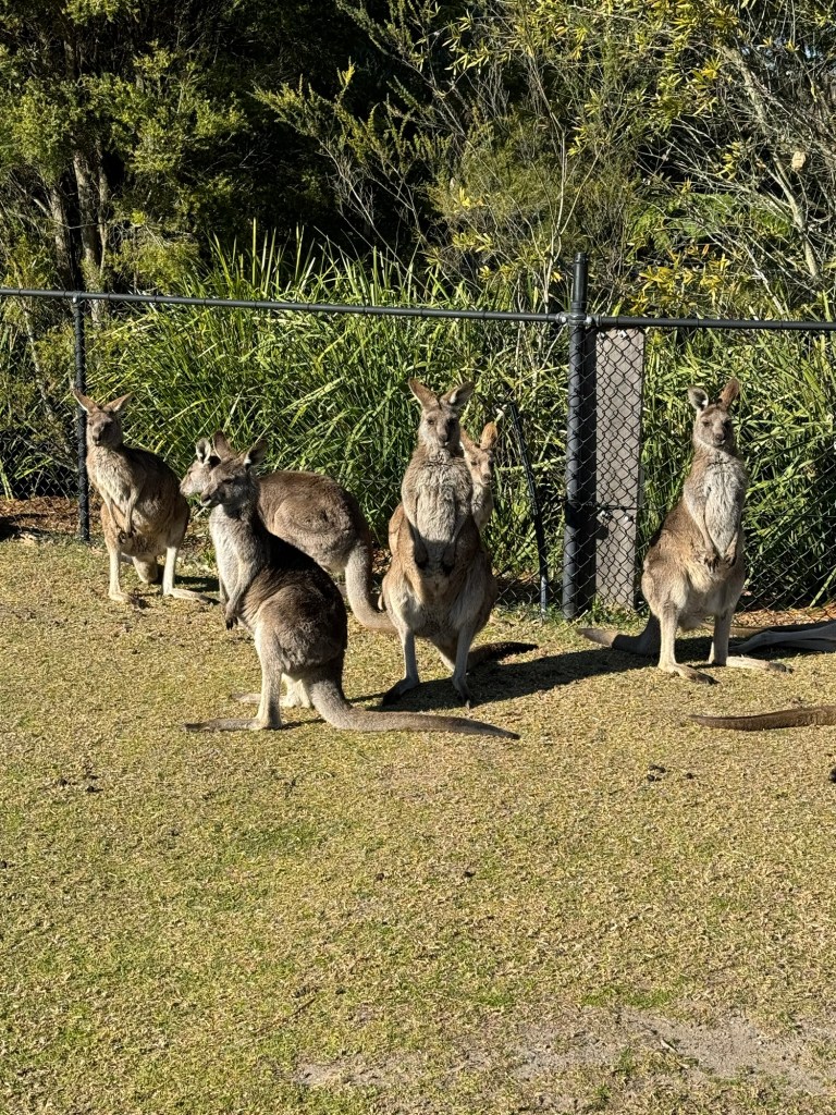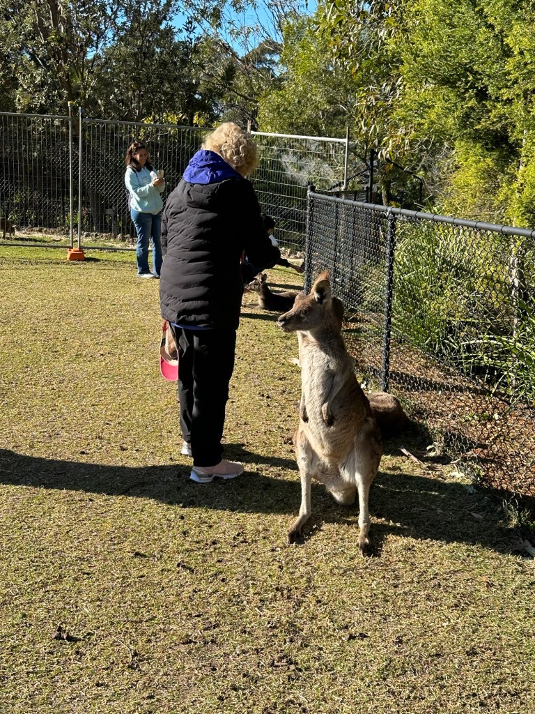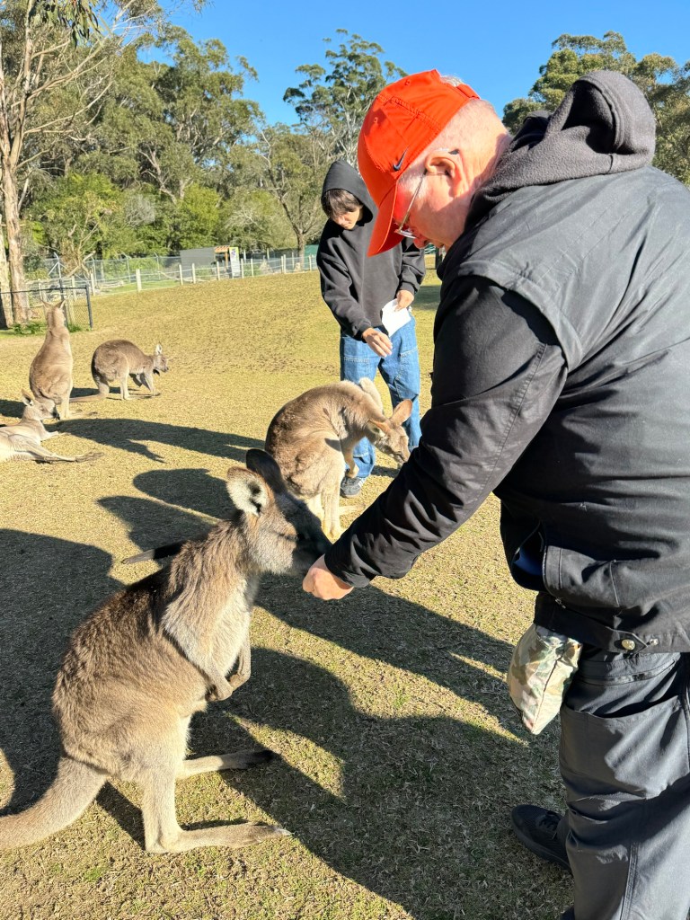 Next we headed to the kangaroos and wallabies. We had a quick lesson on feeding them and got a bag of “roo food” to share with our new friends . When they saw the bags they seemed to come to life. Cory discovered that if you don’t hold the food in the right spot the kangaroo is happy to grab your hands and place them in a comfortable position for eating!