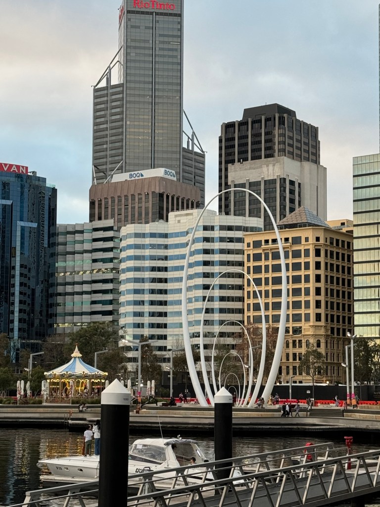 When we arrived in Perth we settled in walked to the Swan River waterfront and Elizabeth Quay. The main attraction is the Perth Bell Tower. It is one of the largest musical instruments in the world and was built to house the 18 bells from the parish church of Buckingham Palace in Trafalgar Square in London.