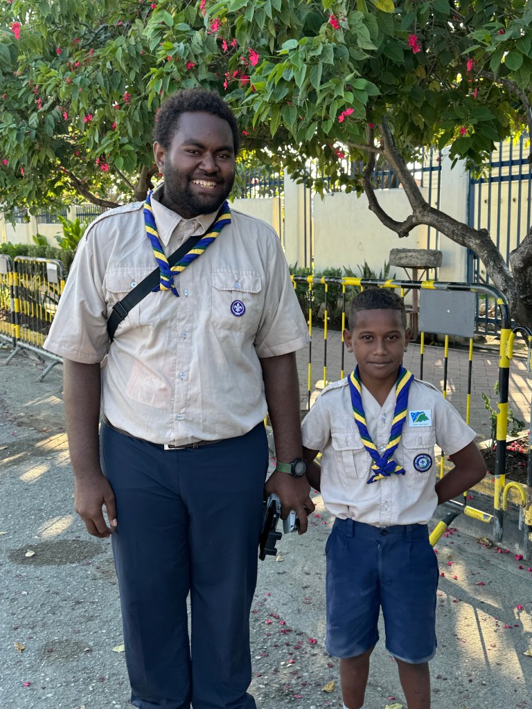 In addition to the Marine Honor Guard there were representatives from the Solomon Island police force who stood at attention during the whole ceremony along with the members of the boys and girls scout organization. The police marching band played the anthems to officially start the ceremony.