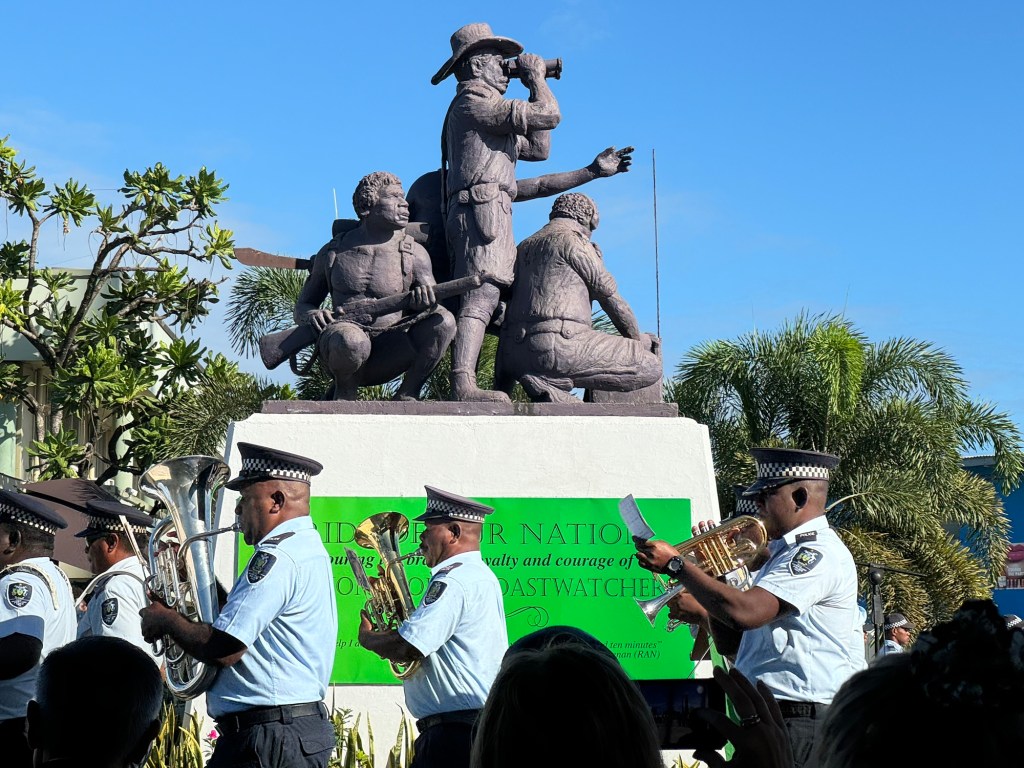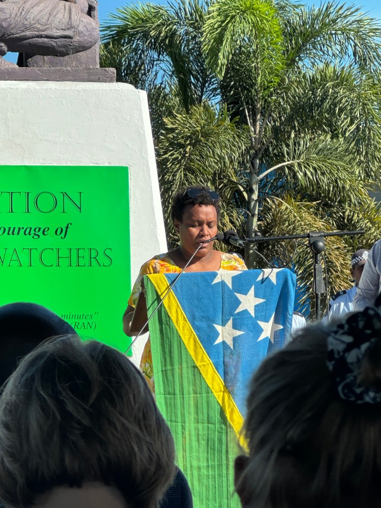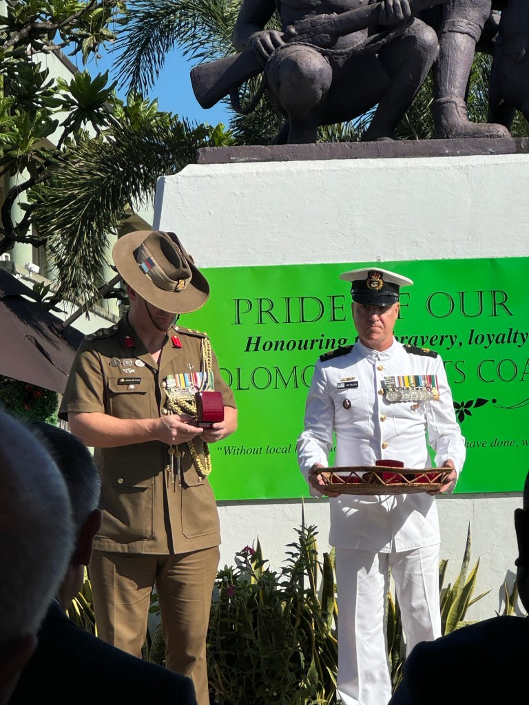 The ceremony took place at the Solomon Scouts Coastwatchers memorial. It was very similar to the American memorial ceremony with the same dignitaries speaking.