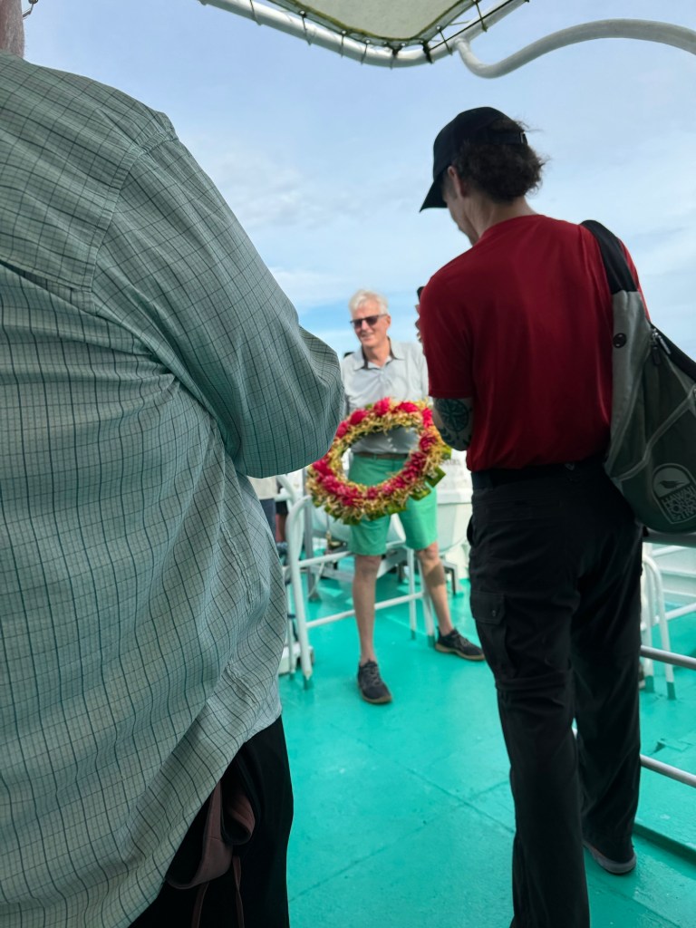 After a short drive from our hotel we arrived at the port and boarded the ferry to Tulagi. We took a short detour to the location where the Australian Cruiser Canberra was sunk in the Battle of Savo Island. A group of Australians had made arrangements with the captain to stop at the site so that they could lay a wreath of remembrance at the site. After a short prayer and a moment of silence, we proceeded to Tulagi.