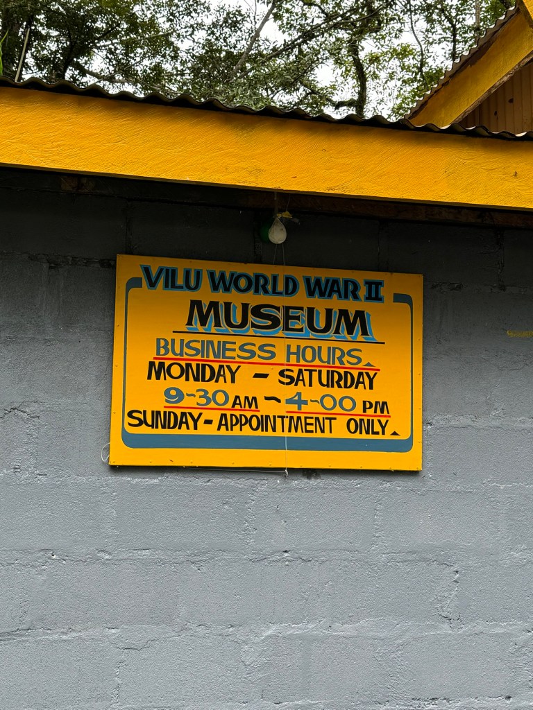 Heading back east along the coast we stopped at the Vilu World War II Museum. The collection here includes a number of Japanese field artillery pieces and recovered aircraft. One of the aircrafts is a P 38 Lightning that flew the mission to shoot down Admiral Yamamoto’s aircraft and killing the Admiral. This aircraft crashed while attempting to return to Fighter 2 from that mission. The collection also includes remnants of a Japanese Float Zero and a Betty bomber. The most interesting airplane in the collection was the F4F Wildcat. The wing on this aircraft actually folded back against the body of the aircraft without even a squeak after 82 years.