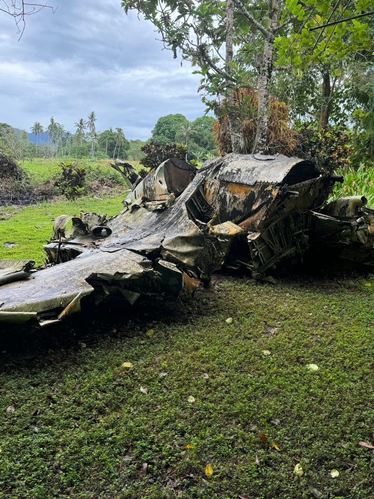Further along the coast at Bonegi we stopped at the beached wreckage of the Kinugawa Maru a Japanese transport ship. By November,1942 the Japanese had lost so many transport ships to American bombers that their admiral ordered the captains to beach their ships so they would not be sunk if bombed and at least some of the supplies would be salvaged. The Kinugawa Maru was one of those ships however, it was the American Army not the Japanese Army who recovered the undamaged supplies.