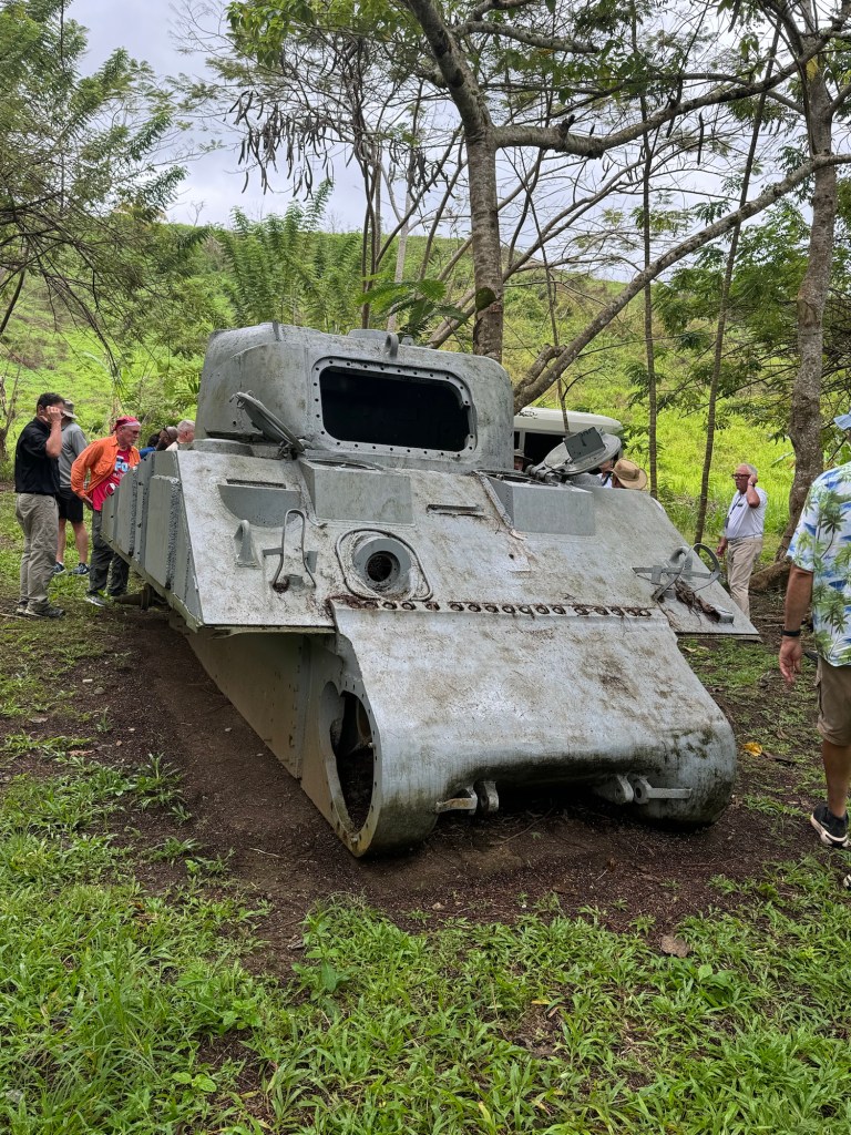 Not far from the Kinugawa Maru is the hull of a Sherman tank. These tanks were not on Guadalcanal during the battle but the hull of this one was used for weapon testing after the battle. One side of the tank looks great but the other side of the tank is full of holes.