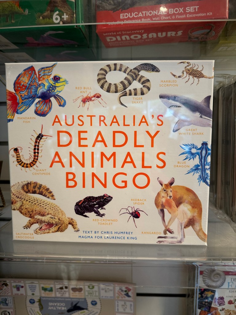 Games are popular all over the world and Australia is no exception. While browsing the wares in the Dorringo Mountain Rainforest gift shop we spotted “Australia’s Deadly Animals Bingo” game. You gotta love those Aussie’s We can only imagine what the “ Old Maid” game looks like.